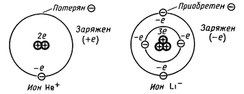 | Заряд тела положителен (+) - это значит, что не хватает электронов. Атом с недостатком электронов - положительный ион. Заряд тела отрицателен (-) - это значит, что избыток электронов. Атом с избытком электронов - отрицательный ион. |