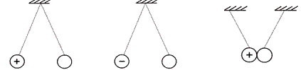Задание: Два одинаковых легких шарика, заряды которых равны по модулю, подвешены на шелковых нитях. Заряд одного из шариков указан на рисунках. Какие из рисунков соответствуют ситуации, когда заряд второго шарика отрицателен?