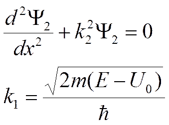 Частица находится выше барьера Е>U0, в этом случае k2 будет действительным числом.