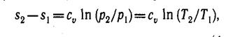 т. е. зависимость энтропии от температуры на изохоре при сv = const имеет логарифмический характер (см. рис. 3).