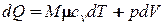 Здесь: dQ, dV и dT – дифференциалы, соответственно, теплоты, объёма и температуры газа, М – количество молей газа,