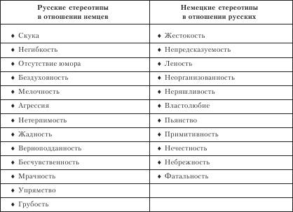 Стереотипы отрицательных качеств немецкой и русской нации[67]