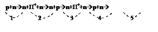 Здесь протон p под воздействием нейтрона n испускает частицу П+ – мезон и превращается в нейтрон n, а нейтрон n, поглотив П+ – мезон, превращается в протон, который, в свою очередь, испустив П+ – мезон, превращается в нейтрон и т.д., образуется последовательная цепь переходов от одного состояния к другому.