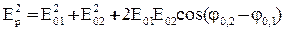 Еслисоsδφ = 1, и Е1 = Е2 = Е, то Ер = Е12 + Е22 + 2Е1 Е2 = (2Е)2 и Iр= 4I1.