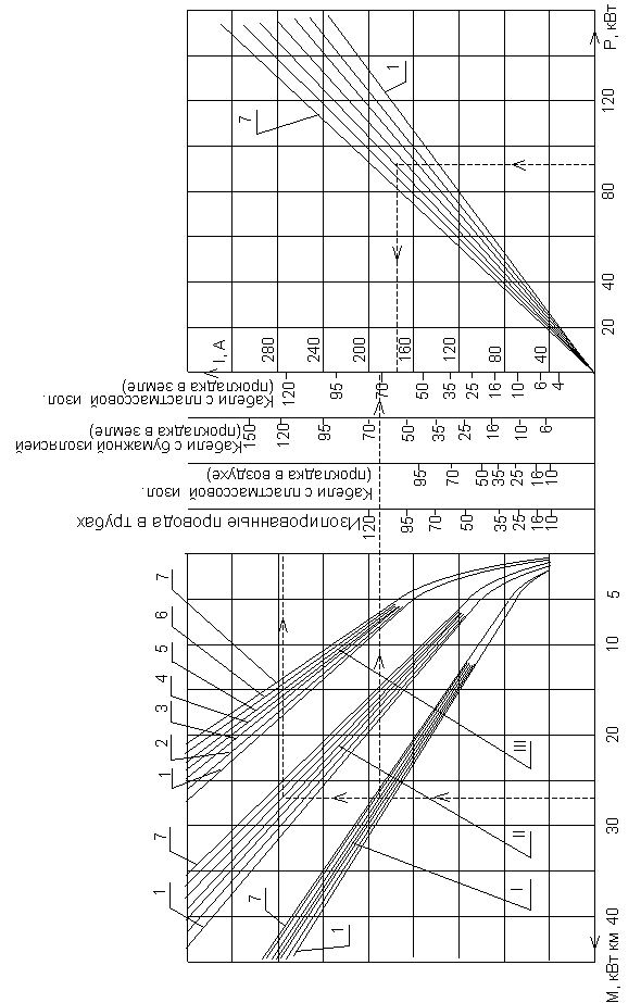 Номограмма для определения сечений проводов и КЛ напряжением до 1000 В.