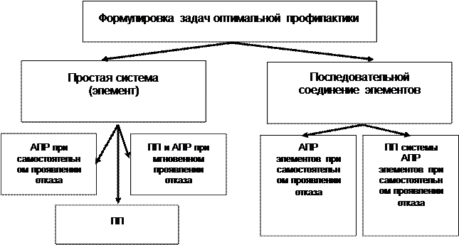 Таким образом, обслуживающий технические системы персонал оказывается перед дилеммой: либо продолжать использовать систему, если эффективность ее функционирования снизилась до некоторого уровня (или возникло подозрение, что подобное снижение могло произойти), либо проводить специальные профилактические мероприятия. На практике в большинстве случаев существует возможность принять такой метод проведения профилактических мероприятий, который позволяет минимизировать суммарные потери, учитывающие затраты на собственно профилактику и потери в результате ухудшения эффективности функционирования системы. Возможны и другие целевые функции, оптимизация которых достигается соответствующим регламентом профилактических работ, например показатели надежности.