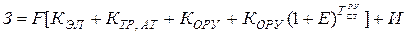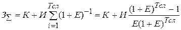 Если рассчитывать затраты за срок службы Тсл, то при условии единовременности капитальных вложений (в реконструкцию или модернизацию) К и постоянства годовых издержек (И) во времени, суммарные приведённые затраты вычисляются по формуле: