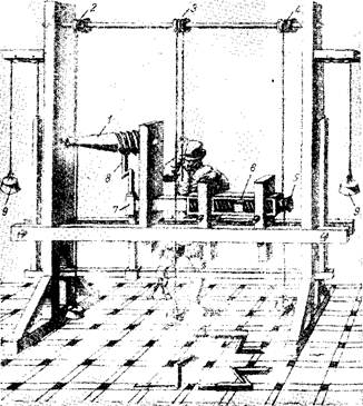 Поперечная подача регулировалась рабочим с помощью педали, нажимая на которую он отводил резец от обрабатываемой детали. Поперечная составляющая усилия резания обеспечивалась грузом 9.