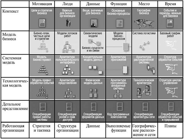 Строки таблицы – это различные уровни рассмотрения, из которых при бизнес-моделировании особенно важны три верхних уровня:
