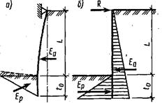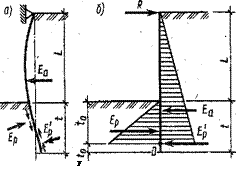 Пассивное давление грунта Ер определяют с учетом сил трения между стенкой и грунтом. За расчетное значение заделки принимают t=(1,15...1,2)t0.