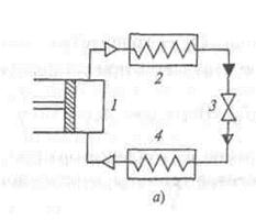 1 – компрессор; 2 – конденсатор; 3 – дроссель; 4 – испаритель