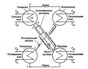 Рис. 7. Общая схема абсорбционной холодильной машины