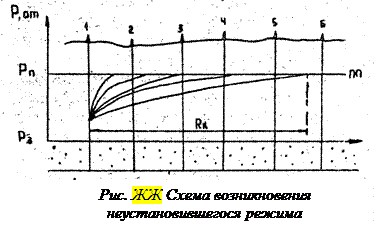 Неустановившийся режим возникает за счет сил упругого расширения нефти и пласта и вызывает перераспределение давления в пласте.