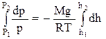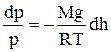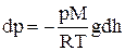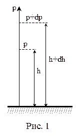 Пусть на высоте h давление р. Тогда на высоте h + dh давление – р + dp. Причём, если dh >0, то dp < 0. (р + dp) – р = – r·g·dh. Из уравнения состояния Менделеева-Клапейрона, имеем: