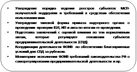 Практически все ФОИВ разрабатывают и реализуют меры поддержки субъектов малого и среднего предпринимательства, направленные на их развитие, в сфере своей деятельности. Это полномочие закреплено в их положениях.