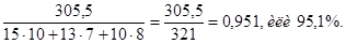 = 0,912:0,951 = 0,96, или 96,0%. Это означает, что за счет изменения удельного веса отдельных компаний в общем выпуске продукции средняя себестоимость снизилась на 4% (96% - 100%). В частности, снижению средней себестоимости способствовало увеличение в общем выпуске удельного веса продукции компании «Дельта», у которой самая низкая себестоимость.