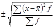 Вес отдельных кип шерсти отклоняется от среднего веса (96 кг) в одних случаях на большую величину, в других — на меньшую. В среднем это отклонение от средней составляет ±7,7 кг. Из этих данных видно и другое: простое среднее квадратическое отклонение выражается в тех же именованных числах, что и средняя величина. Поэтому оно составляет так называемое абсолютное отклонение от средней величины. По данным примера рассчитаем также среднее квадратическое отклонение (взвешенное) для характеристики ряда распределения с неравными частотами. Для этого примем во внимание количество отгруженных кип, которые будут составлять частоты.