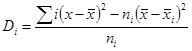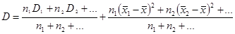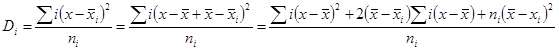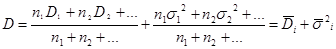 Если совокупность состоит из нескольких частей, то можно определить в пределах каждой не только среднюю величину, но и дисперсию Di (частную дисперсию). Выясним, как связана с ними общая дисперсия по всей совокупности D. Обозначим частные средние