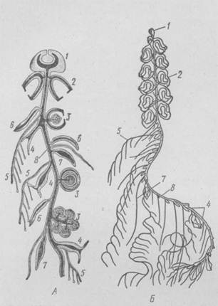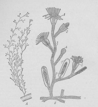 Рисунок 1. Гидроид Obelia. А – колония, Б – отдельная веточка колонии: