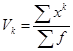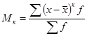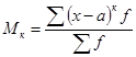 Моментом распределения (Мк) называется средняя арифметическая из отклонений значений признака х от некоторой постоянной величины а в степени к. Порядок момента определяется величиной к. Эмпирический момент к -го порядка определяется по формуле