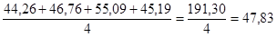 Сначала определяем поквартальные средние уровни продажи как простые средние арифметические за каждый квартал на протяжении шести лет. Например, для I квартала средняя будет равна 44,24 млн. руб.