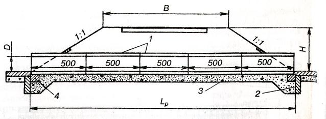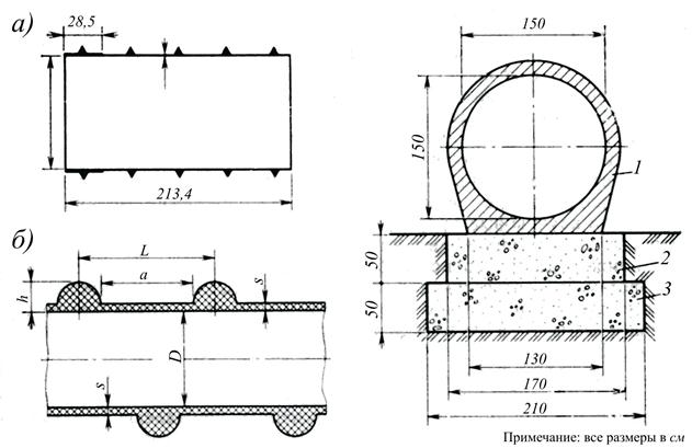 1 – тело трубы; 2 – бетонный фундамент; 3 – песчано-гравийная подушка