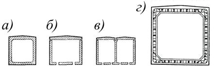 а - одноочковая из сборных звеньев; б и в – одно- и двухочковая из сборных элементов; г – армирование звена