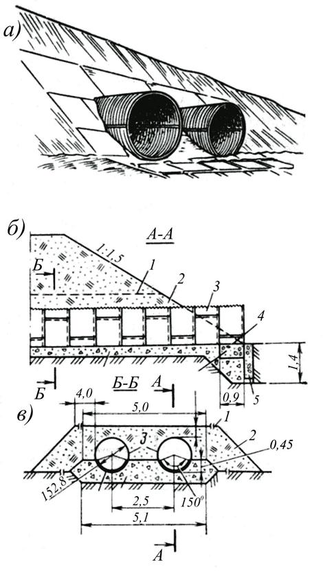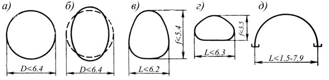 а – круглая; б – эллиптическая; в – овоидальная; г - труба-арка; д - арочная мост-труба