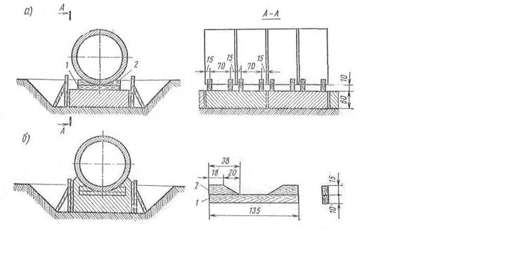 Рис. 21. Схема установки звеньев трубы диаметром 1,5 м при бетонировании подушки:
