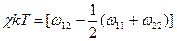 , характеризующий изменение энергии при разрыве связей между молекулами исходных компонентов 1-1 (ω11) и 2-2 (ω22) и образования связей их друг с другом 1-2 (ω12):