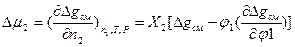 Наибольший вклад в свободную энергию смешения и химические потенциалы некристаллизующихся компонентов в смеси дает комбинаториальная энтропия смешения ΔSсм, а особенности межмолекулярного взаимодействия компонентов учитывается через парный параметр взаимодействия