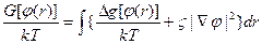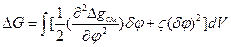 В соответствие с классической теорией спинодального распада Кана-Хилларда разность свободной энергии статистически гомогенной смеси и с флуктуациями концентрации ΔG, определенная с помощью функционала Гинзбурга-Ландау и являющаяся термодинамической движущей силой спинодального распада, равна: