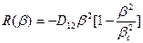 =0 и R(β)=0 критическое значение β (βс) характеризует волновое число, выше которого амплитуда флуктуаций концентрации растут, а ниже – рассасываются. Введение βс позволяет записать уравнение для R(β) в виде: