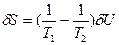 - Локальная флуктуация внутренней энергии заключается в ее изменениях для частей системы 1 и 2 при сохранении неизменной общей энергии системы (δU1=-δU2=δU). При этом значения первой и второй вариации энтропии равны: