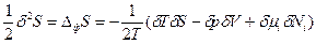 + … (72), причем членами ряда более высокого порядка малости, чем 2, обычно пренебрегают. В данном разложении член первого порядка малости δS является функцией первой степени флуктуаций температуры (δТ), объема (δV) или состава (δNk), а член второго порядка малости
