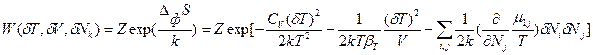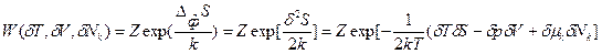 в соответствие с уравнением (85) дает общее выражение для вероятности флуктуаций δТ, δV и δNk: