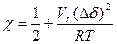 , где k –константа Больцмана; Т – абсолютная температура. В усовершенствованных теориях параметр χ рассматривают состоящим из энтальпийного (χH) и энтропийного некомбинаториального (χS) вкладов: χ = χH + χS. В идеальных, или θ -условиях χH =0, а χS =1/2. Полуэмпирическим методов параметр χ может быть рассчитан через разность параметров растворимости компонентов Δδ= δ1- δ2, которые представляют собой корни квадратные из плотности энергии когезии е к: