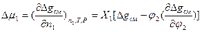 Наибольший вклад в свободную энергию смешения и химические потенциалы некристаллизующихся компонентов в смеси дает комбинаториальная энтропия смешения ΔSсм, а особенности межмолекулярного взаимодействия компонентов учитывается через парный параметр взаимодействия