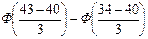 Решение. Пусть X – количество баллов, полученных испытуемым. По условию a =40, α=34, β=43, s = 3. Тогда