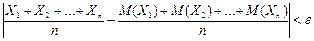 ▲ Теорема 2.33. (Теорема Чебышева). Если X 1, X 2, …, Xn попарно независимые случайные величины, причем дисперсии их равномерно ограничены (не превышают постоянного числа C), то как бы мало ни было положительное число e, вероятность неравенства