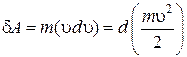 идет на приращение некоторой величины (стоящей в скобках), которую называют кинетической энергией:
