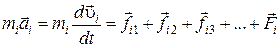 – равнодействующая всех внешних сил, действующих на этот элемент, mi – масса i -го элемента.