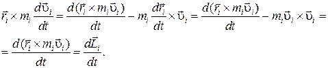 Левая часть (5.5) представляет собой момент импульса системы, который равен векторной сумме моментов составляющих систему точек: