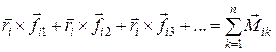(k = 1, 2, …, n) представляют собой внутренние силы взаимодействия всех элементов тела с выбранным элементом i, а