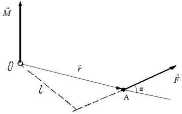 , равную векторному произведению радиус-вектора точки на вектор силы, действующей на точку A, называют моментом силы