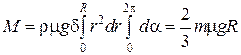где dm = r dV = rd rdrd a – масса элемента объема диска. Тогда суммарный момент сил трения получим, интегрируя выражение для dM по r в пределах от 0 до R и по a в пределах от 0 до 2π: