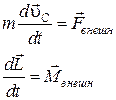 Движение твердого тела определяется двумя векторными уравнениями - уравнением движения центра масс, другое - уравнение (5.7), описывающее изменение момента импульса, которое было получено для произвольной механической системы