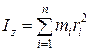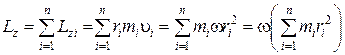 где mi и ri - масса и расстояние от оси вращения i -й частицы твердого тела, ω - его угловая скорость. Величина в круглых скобках, которую обозначим через Iz, называется моментом инерции твердого тела относительно оси z: