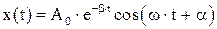 В соответствии с видом функции (18) движение системы можно рассматривать как гармоническое колебание частоты ω с амплитудой, изменяющейся по закону А(t) = А0e‑β∙t.