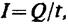где Q — электрический заряд, проходящий за время t через поперечное сечение проводника.